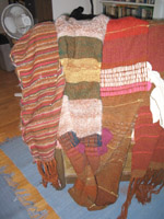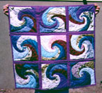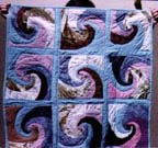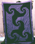 Here are some of my current quilts - handweaving photos are below; more photos are coming. Click on the thumbnail to see each one full size and view pricing info. (Thanks to Charlie for being the human display rack!). Yes, spirals are a major theme in my work; it's always interesting to take straight angles and turn them into curves.